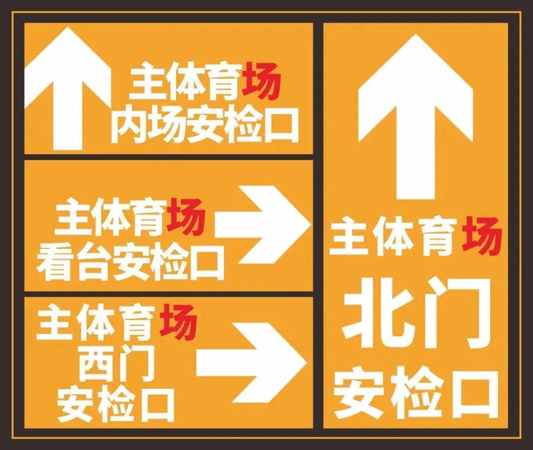 2、北门安检口:由场馆北门前往初验票通道,按照如上指引通过初验→按需存包→安检→人脸识别→对号入座。