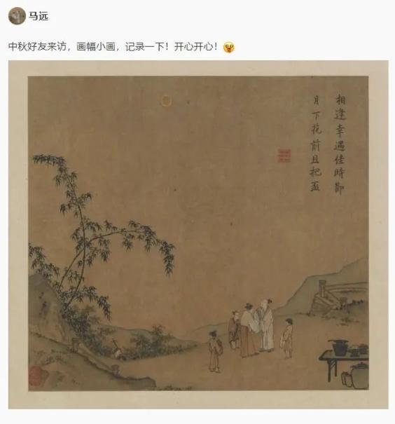 南宋 马远《月下把杯图》 天津博物馆藏看了马远在“朋友圈”晒的“美照”