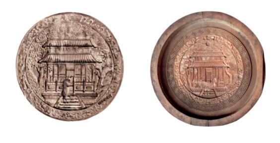清 月饼模子(两件) 故宫博物院藏清代“桂序昇平”年画中