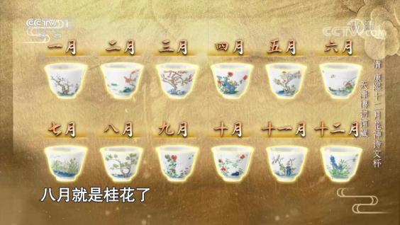 清 康熙青花五彩十二花神诗文杯之八月桂花 天津博物馆藏中秋时节,丹桂飘香