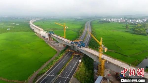 图为柳梧铁路平田跨柳北高速特大桥连续梁。胡飞宇 摄据悉,柳梧铁路是柳州至广州铁路的重要组成部分,为国铁I级、双线电气化、客货共线铁路,设计速度目标值160km/h,计划于2026年底开通运行。