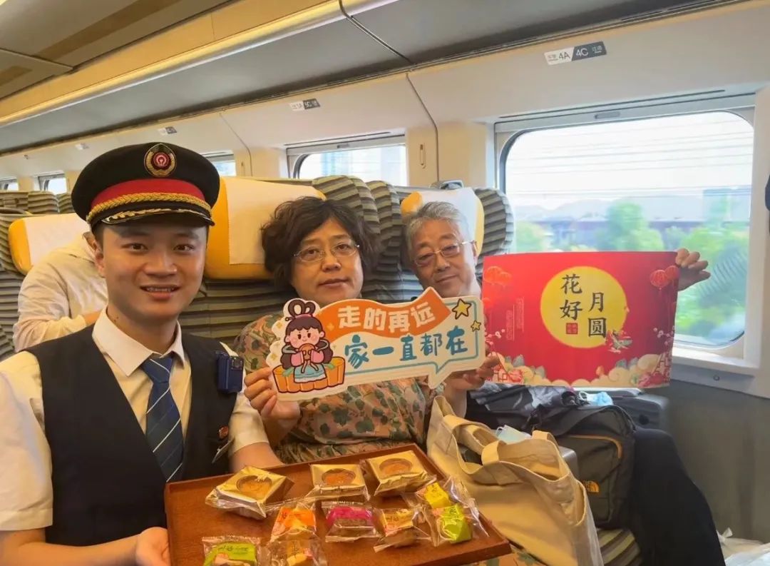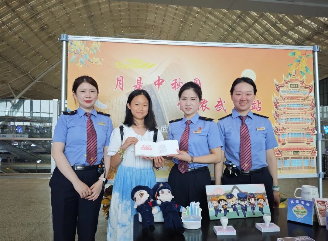 武汉、汉口车站在旅客集中区域打造黄鹤楼、长江大桥、古琴台、武大樱花、东湖绿道等标志性旅游景点水晶造型,在光电映射下分外炫目,展示武汉特色城市文化魅力,吸引旅客纷纷打卡拍照。武汉、襄阳客运段列车员们用月兔、灯笼、团扇等蕴含传统文化的装饰元素布置车厢,准备月饼、心愿书签等精美小礼物,介绍分享中秋节的由来、传统习俗,通过知识问答,诗歌接龙、听歌猜名等形式与旅客进行互动。