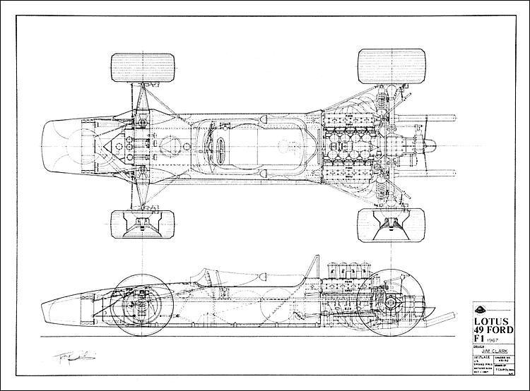3.0L V8 的 DFV 能够可靠的输出 400 马力,而好马配好鞍,首次搭载 DFV 发动机的莲花 49 ,又一次的改变了 F1 ,它用螺栓把发动机固定在底盘上,大家成为一个整体一起受力,车身刚性变得更高,在弯道这种扭来扭去的地方所向披靡。莲花 49