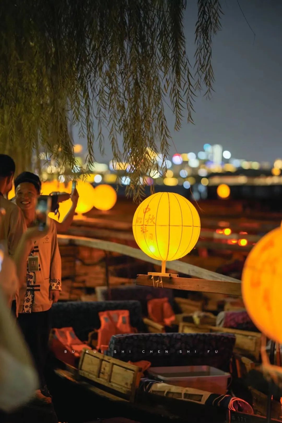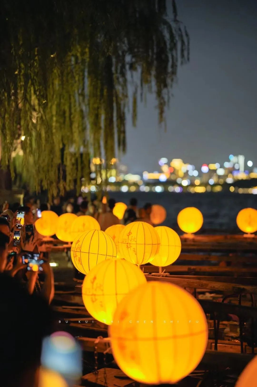 岸边,古柳轻拂,被灯光点缀的树下,游人们或驻足欣赏,或轻声交谈,吃购游娱间脸上皆洋溢着节日的喜悦。