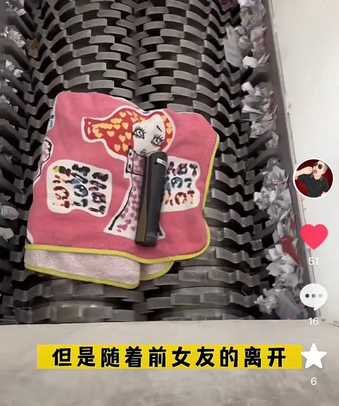 而那些“重要的时刻”与“永远的爱”,将很快经过撕碎机坚硬的齿轮,穿过轰鸣,一点点消失在缝隙之中,变为碎片。