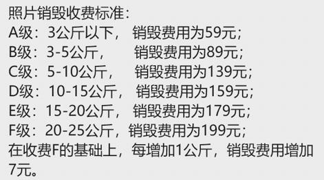 他将“销毁费”定在59-199元之间,按照寄来物品重量的不同,分为七个档,超过最高档,每增加1公斤,销毁费用增加7元。