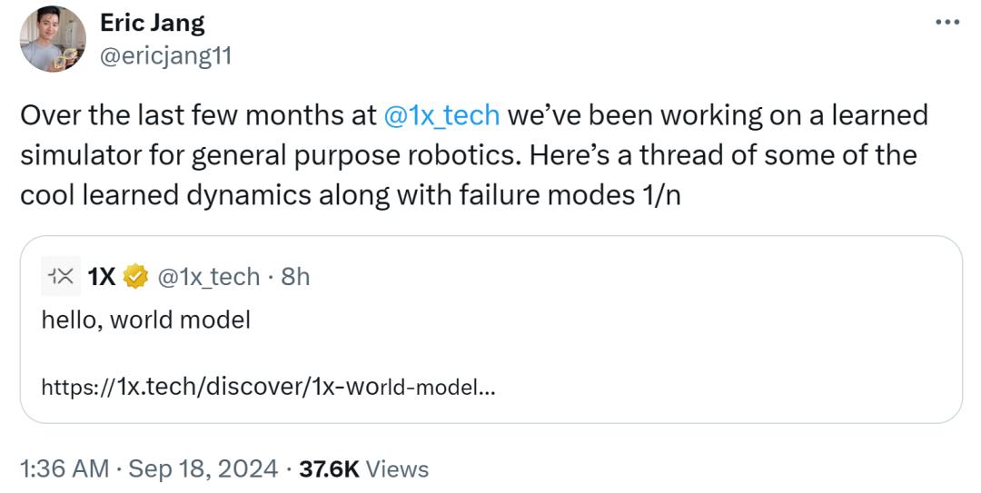 1X 人工智能副总裁 Eric Jang 表示,过去几个月,1X 一直在开发通用机器人的学习模拟器,如今终于问世了。