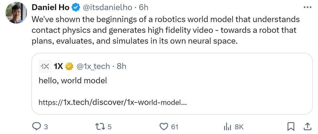 各路网友也对这个机器人世界模型给予了很高评价。