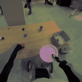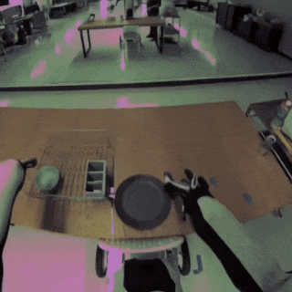 左边的生成结果表明模型对物理特性有了新的理解,当抓手松开勺子时,勺子掉到桌子上就证明了这一点。然而,在很多情况下,模型生成结果都未能遵守物理定律,例如右侧的盘子悬浮在空中。