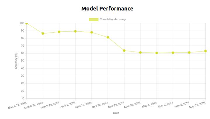 此前 1X 训练了一个模型,在 50 天的时间里,机器人性能下降了
