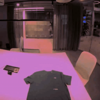 模型还可以生成长视野视频。下面的示例模拟了完整的 T 恤折叠演示。T 恤和可变形物体往往很难在刚体模拟器中实现。