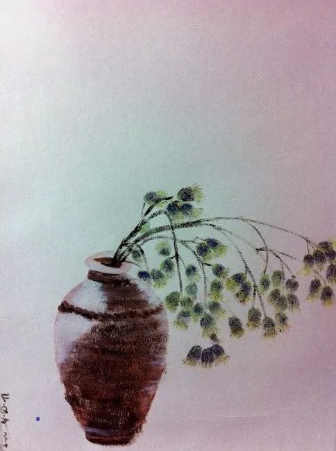 夏天的察哈尔(水粉 52×38cm 2013年 冯秋子 绘)这种悲怆的思念情感化作一幅《老人和琴》的铜版肖像画,悬挂在作者的墙壁上,让她伴随着马头琴声进入梦乡——这是绘画与音乐的魔力。显然,蒙古族长调是思恋亲人、感念故土的表达,诚如与蒙古族有着血脉关系的作者一听到那首三百年前由原始曲调改编而来的《鸿雁》时,就止不住热泪长流,因为那“悠扬,苍凉,辽远,高亢,感染于心而情不自禁”。是的,好的音乐旋律是超越国家、民族、阶级的艺术语言,它们之所以能够传遍四方,缘于它用人性和良知征服了世界。在《母亲的花草》里,我们同样在画外音乐里听到了罗大佑《亚细亚的孤儿》在风中哭泣的颤音,在戈壁草滩、沉缓的山峦,以及沙尘暴的暗色背景中,“长鞭一样的颤悠悠的歌,一起落进了我的心里”。孱弱的母亲的花草就在这里挣扎着,生活着。这就是许多欧洲油画家早在几个世纪前就在调色板上调出“暗色”光感的原因。这种艺术幻想能否被运用到文学创作中来呢?