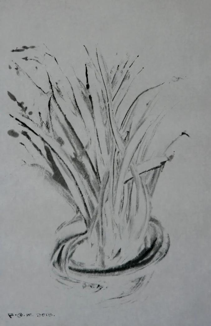 母亲的花草·野地的宝(纸本水墨 冯秋子 绘)我理解这本精致的插图本书籍为什么很多都采用了作者自己绘制的“白音布朗山系列”作为插图,那是因为这是她散文的基本色调,其风景画中所蕴含着的人文色彩是显而易见的。此时我正撰写克拉克对欧洲印象主义绘画的解读,本来想把她插图中的风景画,包括许多向日葵的临摹画,进行详细的解读,可惜篇幅受限,只能放弃插图绘画主题与文学作品之间的对应关系的阐释了。