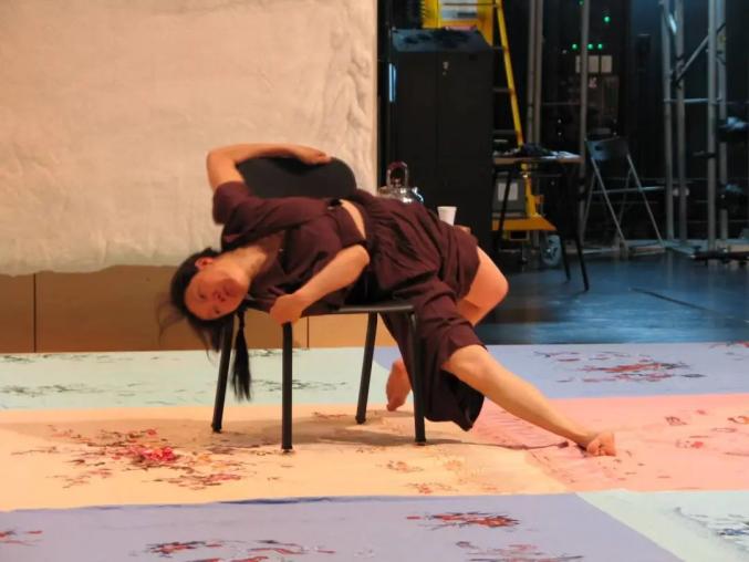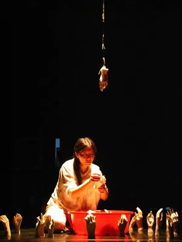 舞蹈剧场《生育报告》(新加坡艺术节首演剧照 2005.6.8)肢体的韵律和节奏感如何与文学血肉相连呢?秋子认为:“文学写作和舞台艺术创作一样,有自身规律,有共通的艺术格调和要求。写作行为和‘文学的艺术’之间,有不小的距离,在有限的时间和生命里,我愿意为文学达到其艺术那样的高度而倾心尽力。我从舞台艺术实践中学习到的节制分寸,将贯穿我的文学写作中。因为文学与舞台艺术实践给予我的浸淫和鼓励,今天,使我能够去体会绘画艺术。”这就是作者把文学和舞蹈、绘画紧紧联系在一起的艺术逻辑所在,当然也是文学作品的灵魂所在。