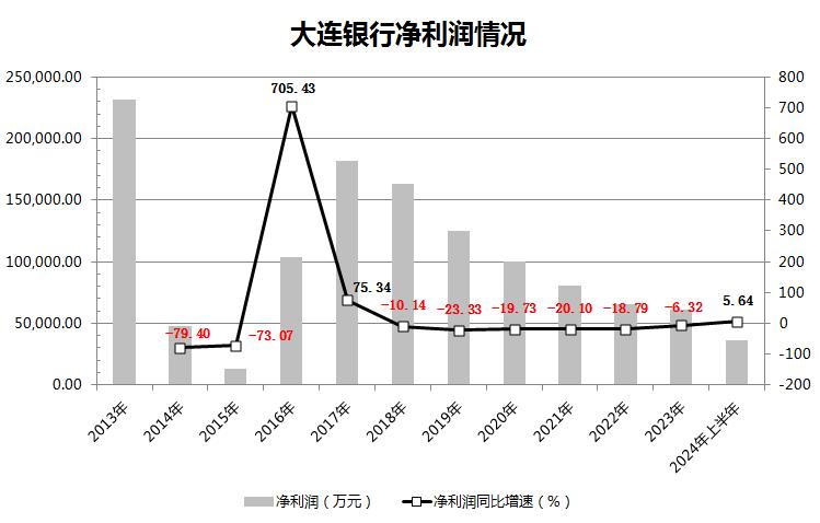 2024年上半年,大连银行实现营业收入26.41亿元,同比增长23.3%;净利润3.56亿元,同比增长5.64%。
