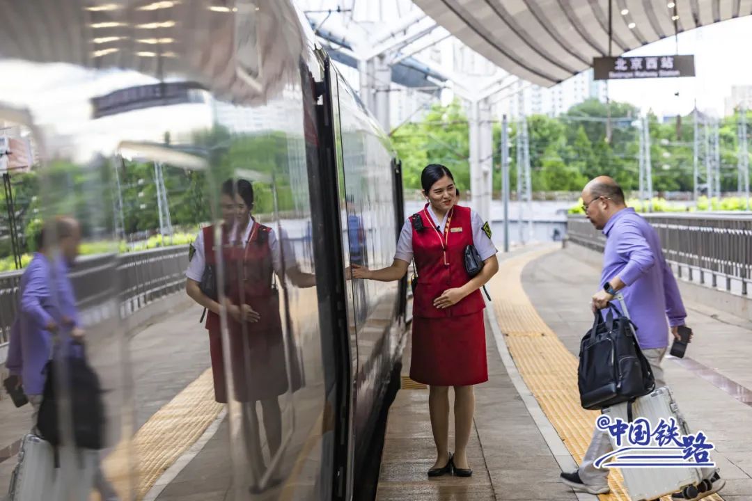 “本趟列车的旅客主要以旅游、探亲为主,列车运行区间大、速度快,停靠的车站多为高铁枢纽站,备受旅客青睐,上座率非常高。”北京客运段京广高铁车队业务指导刘志刚说。
