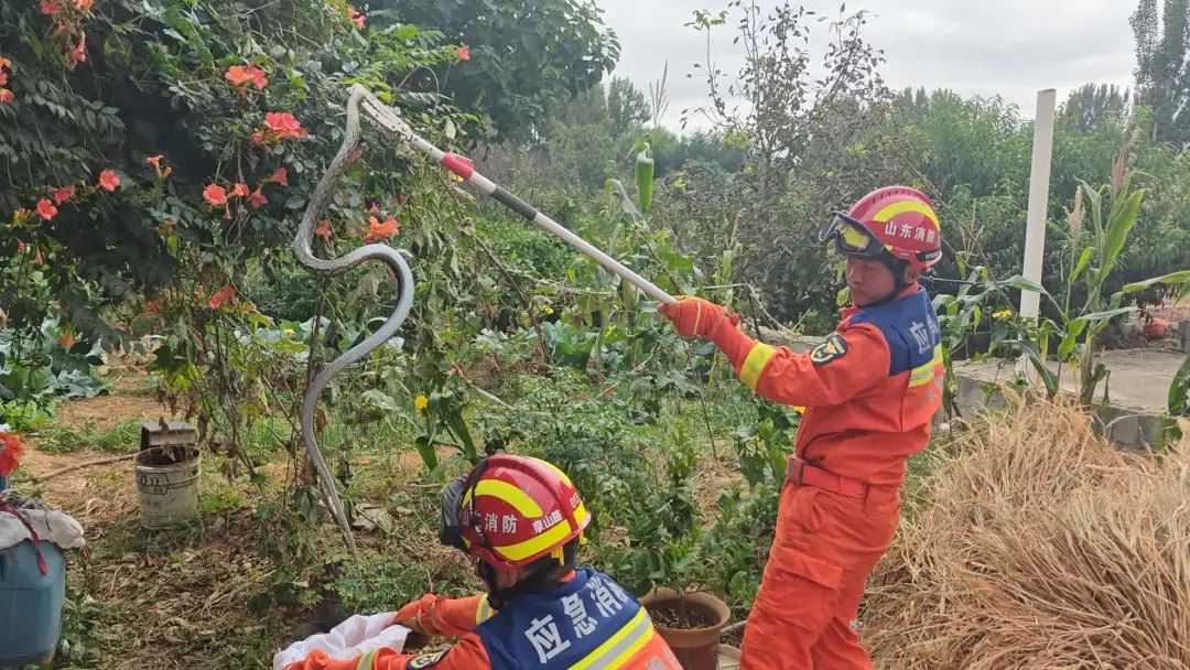 9月17日17时25分,烟台市消防救援支队指挥中心接到报警:招远市泉山路附近一村民家中有蛇盘踞,请求救助。招远消防立即调派救援力量赶赴现场施救。
