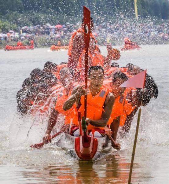 龙舟鼓响,一夜飙三厢。(“三厢”,礼乐话,即三节。甘蔗长得最快的时间是农历五月上旬。)