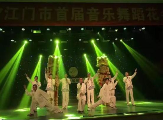 狮舞(江海佛装狮艺)江门市的民间醒狮活动,最早出现在清朝中,起源于江门白沙庙前里。江门蔡李佛雄胜馆的始创人陈长毛,清末民初时,表演兴盛,成为一门传统艺术活跃于民间,至今已有200多年的历史。江门醒狮属于南狮习俗,融武术、舞蹈、音乐为一体,各市镇村都有自己的醒狮队,逢年过节都会组织表演。南狮制作有佛山狮和鹤山狮,分红、黄、青、白、黑等颜色。有单狮表演,双狮表演和群狮表演,多以三星鼓点、七星鼓点,三星与七星混合鼓点作指挥。每头狮子由狮头、狮尾两人合作表演。醒狮传统舞法主要有:狮子出洞、狮子上楼台、板凳青、桥头青、桥底青、七星伴月等造型用佛装狮。作为一种历史悠久的民间传统文化形式。江门佛庄狮艺在江门乃至周边地区有一定的艺术影响力,在江门传统民间文化中占有重要的地位,有较高的艺术价值。