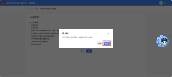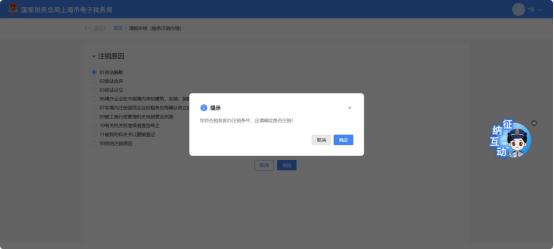 ②系统提示“您符合税务即办注销条件,还请确认是否注销!”,点击【确认】。