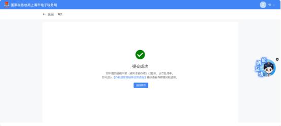 (2)跳转至提交成功界面,提示“您申请的清税申报(税务注销办理)已提交,正在处理中。您可进入【办税进度及结果信息查询】模块查看办理情况和进度。”,点击【返回首页】返回新电子税局首页。