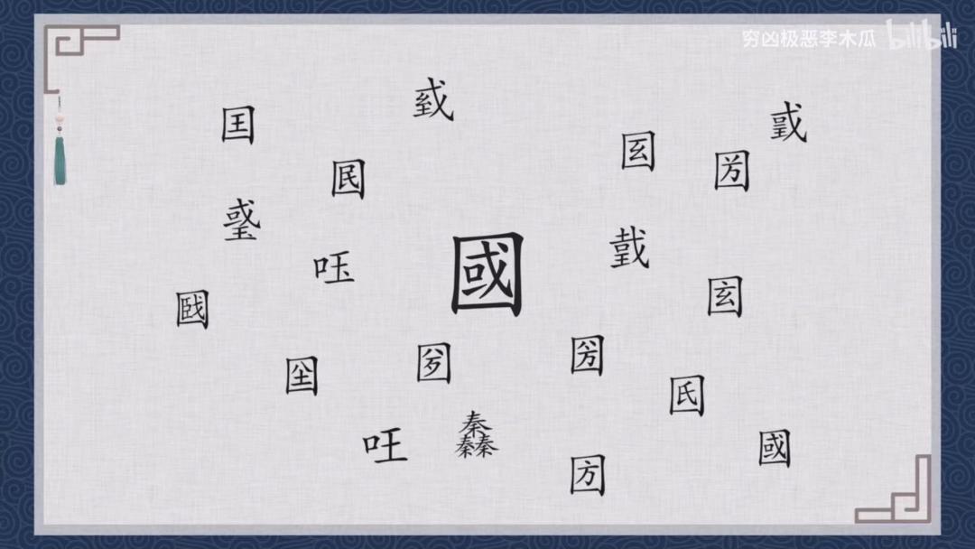 “国”俗体字的多种字形根据《宋元以来俗字谱》记载,宋元明清12种民间刻本中所用的简体字多达6240个,它们对应繁体字共1604个,也就是说平均每个繁体字有3.9个不同的简化字。