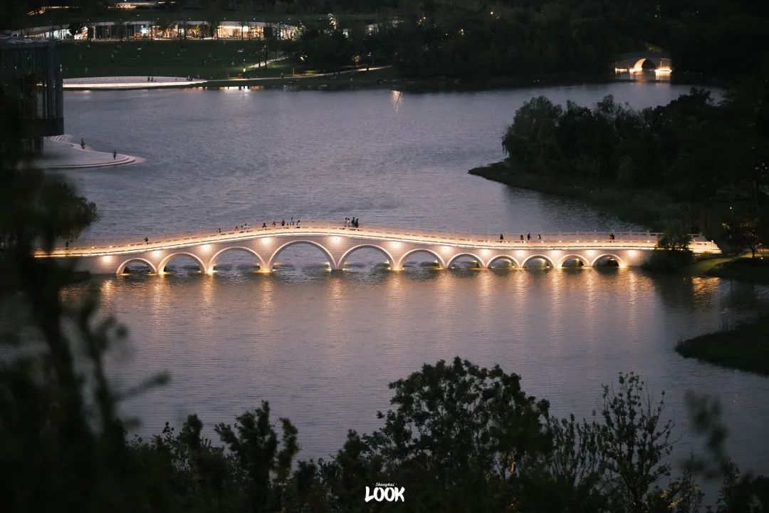 如果你恰好在傍晚前来,不妨等待夜幕降临,看看公园夜景。灯光将中心湖的十一孔桥描出细致的轮廓,远处的建筑星星点点。