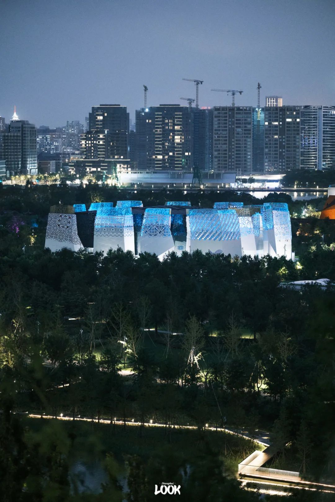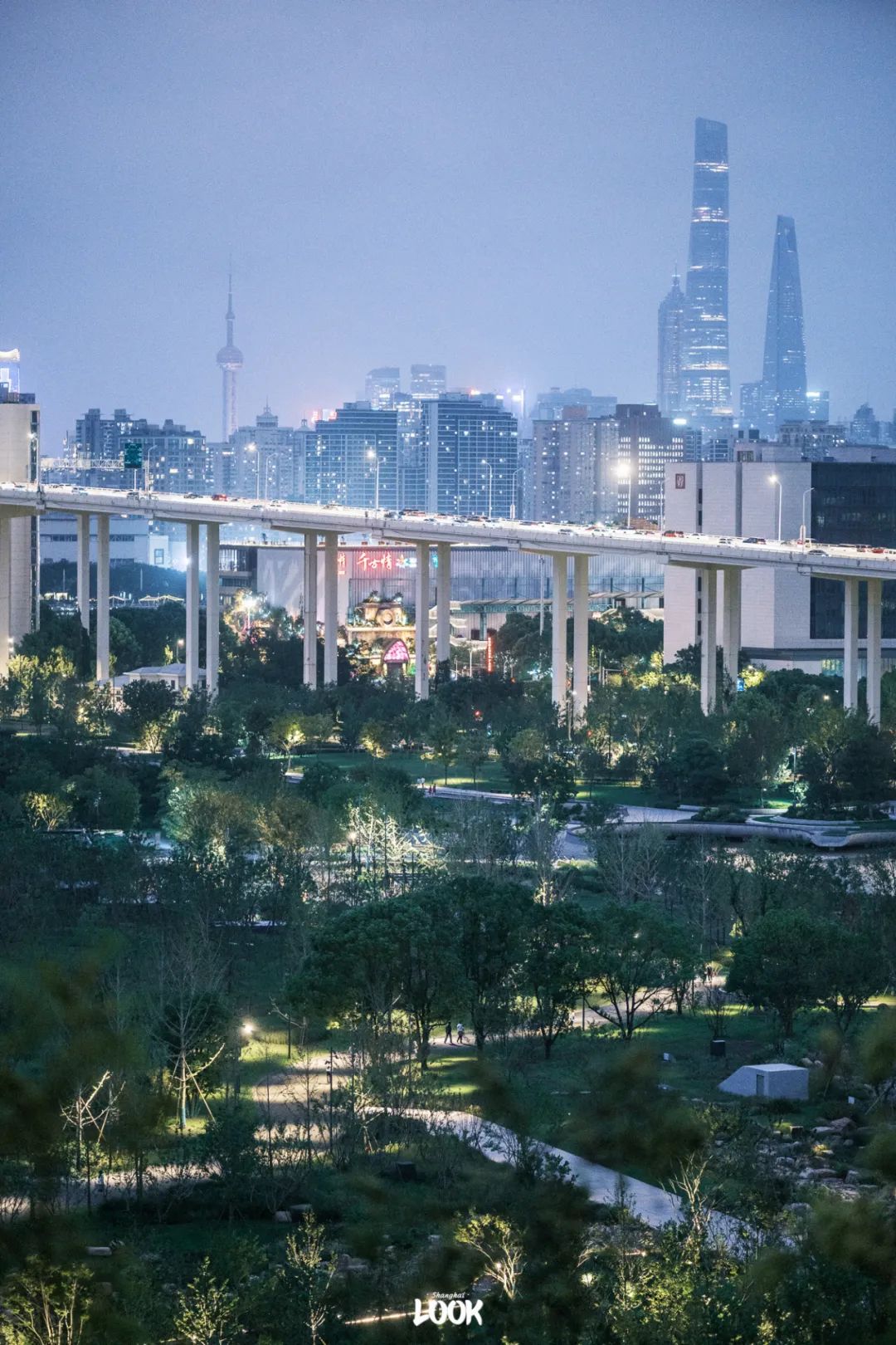 当整座城市灯光亮起,远处的陆家嘴四件套也逐渐清晰。