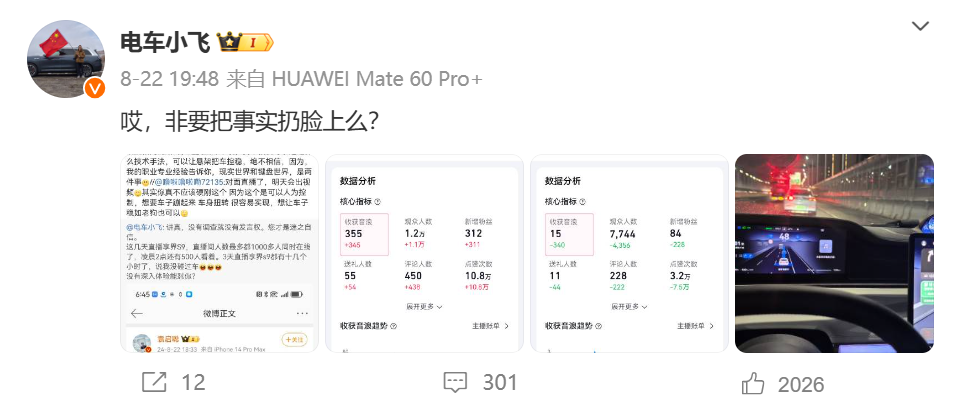 图7:电车小飞发布复测数据并喊话袁启聪