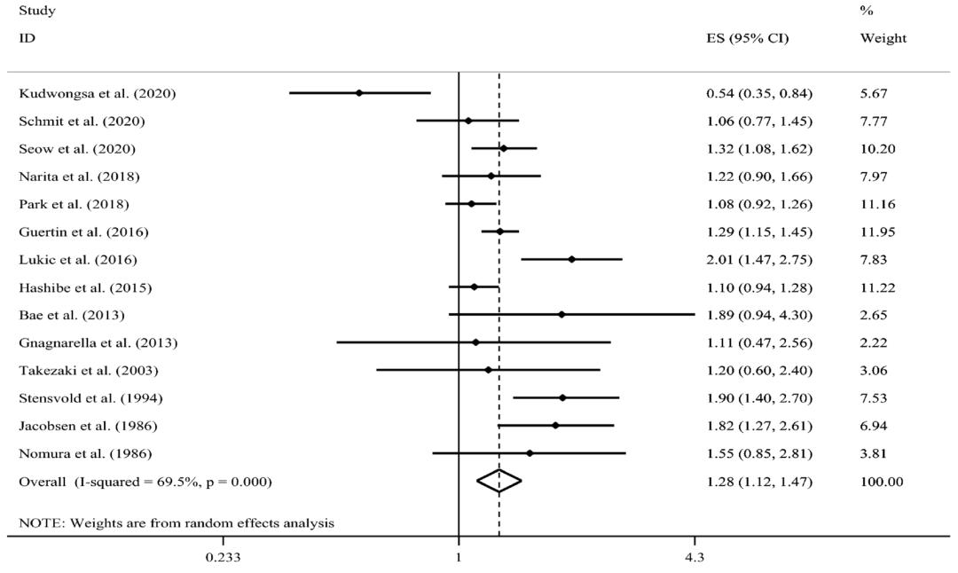 研究流程图综合分析发现,饮用咖啡与肺癌风险之间存在明显的正相关性。具体来说,与不喝咖啡的相比,喝咖啡的参与者罹患肺癌的风险显著增加了28%。