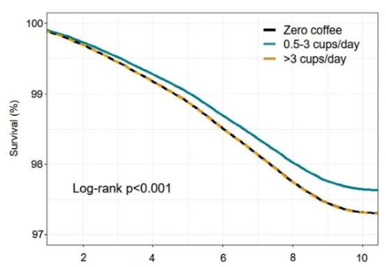 [3]Simon J, Fung K, Raisi-Estabragh Z, et al. Light to moderate coffee consumption is associated with lower risk of death: a UK Biobank study. Eur J Prev Cardiol. 2022;29(6):982-991. doi:10.1093/eurjpc/zwac008