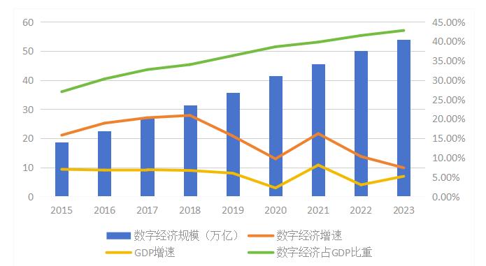 数字经济已经深刻融入我国经济社会的各个领域,成为经济发展的新动能。2023年,中国GDP达126.05万亿元,数字经济规模达到53.9万亿元,较上年增长3.7万亿元,占GDP比重达到42.8%,较2022年提升1.3个百分点,数字经济有效支撑了经济稳增长,为数字文旅行业提供了广阔的市场空间和发展机遇。