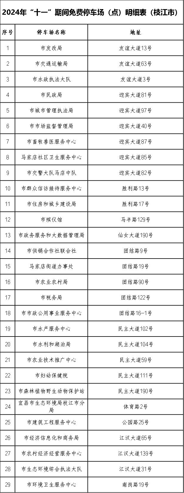 枝江发布原标题:《国庆假期,枝江这些地方免费停车!》