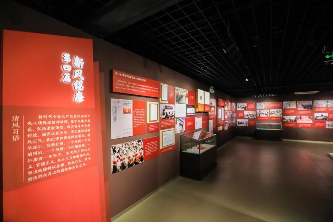 >展览注重将中华优秀传统文化中的清廉元素与红色文化相结合,展厅内“翠竹”“墨荷”互相点缀,“锦旗”“纱幔”交相辉映,给参观者带来沉浸式的观展体验,于细节中传播廉洁文化理念。