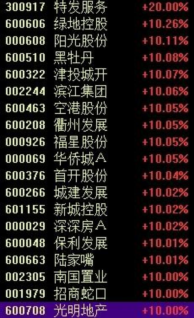 地产股爆发午后,A股地产股直线拉升。金地集团、绿地控股、阳光股份、空港股份、衢州发展、福星股份、华侨城A、首开股份等十余股涨停。代表A股龙头地产行情的地产ETF(159707)场内价格已暴涨8.58%,成交额超5000万元。