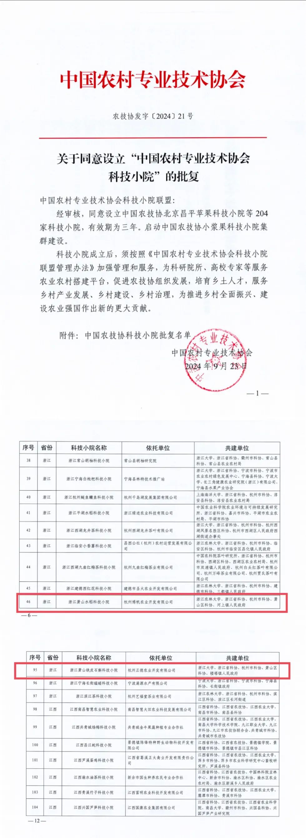 原标题:《喜报!萧山两家单位获批“中国农村专业技术协会科技小院”》
