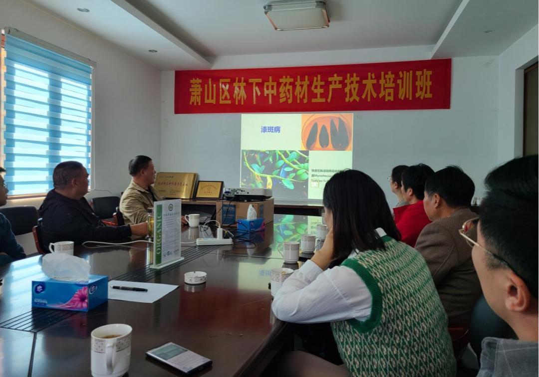 萧山铁皮石斛科技小院是以杭州正德农业开发有限公司楼家塔铁皮石斛基地为支撑,以浙江大学和省市区各级科协为依托,以研究生、本科生扎根生产一线为主体,以合作社、种植大户、农民为重点,以肥水一体化、高产高效优质栽培、绿色防控等农业技术为载体,集科学研究、人才培养、技术服务为一体的“三农”服务平台。在以楼兵干研究员为主的专家技术团队带领下,萧山铁皮石斛科技小院针对人工种植铁皮石斛过程中病虫害极易发生,从而导致铁皮石斛减产,及不规范使用化学农药和肥料导致的农药残留超标等问题,开展对铁皮石斛病虫害种类、分布、危害状与严重度进行系统调查的基础上,明确病虫害种类,建立病虫害基础数据库;通过研究铁皮石斛主要病虫害的发生规律,针对白绢病、轮纹病、炭疽病、蜗牛、独角仙等5种主要病虫害着重研究适宜农业措施、生态调控、理化诱控、生物防治等绿色防控技术,集成一套以农业防控、生态调控、理化诱控、生物防治、应急化学防控为一体的铁皮石斛主要病虫害绿色防控技术。