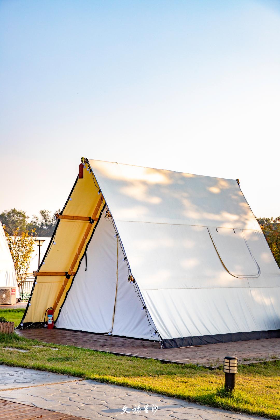 园区内的露营基地多是白色帐篷,临近水边,与大片绿草地相衬,清新感扑面而来。附近还有不少白色集装箱式的建筑可以打卡,用蓝天和田野做背景板,拍照很出片~