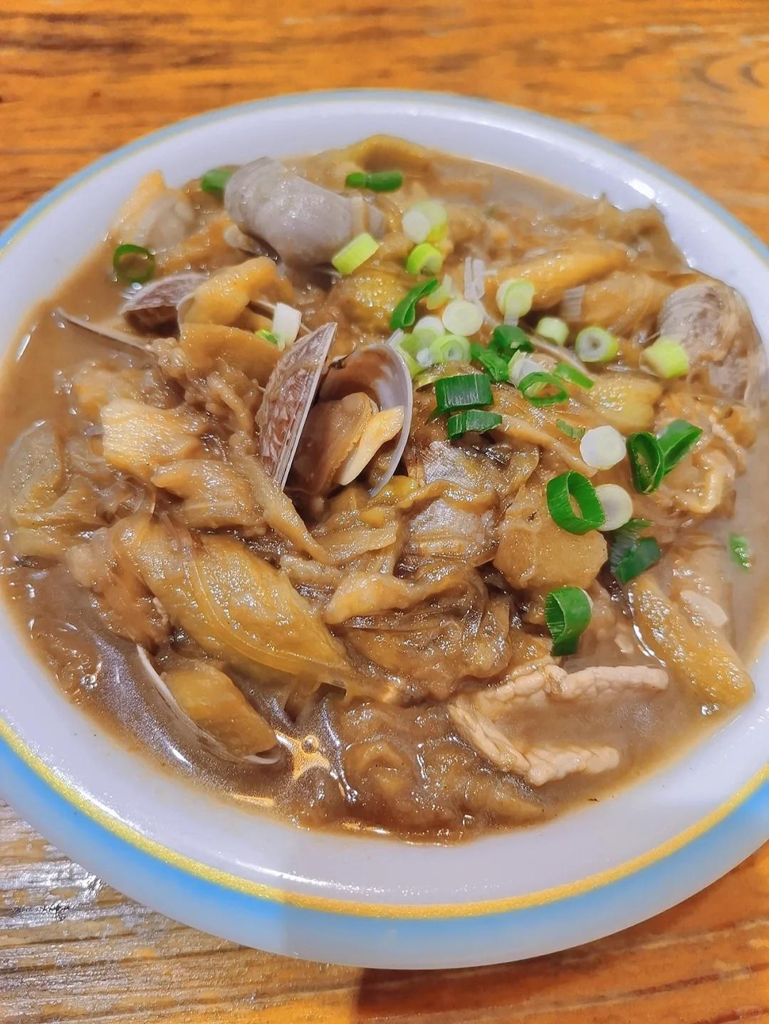 当地人会将茄子撕成细长的条,和文蛤一起炖煮,极具东北家常气质,却极其鲜美。