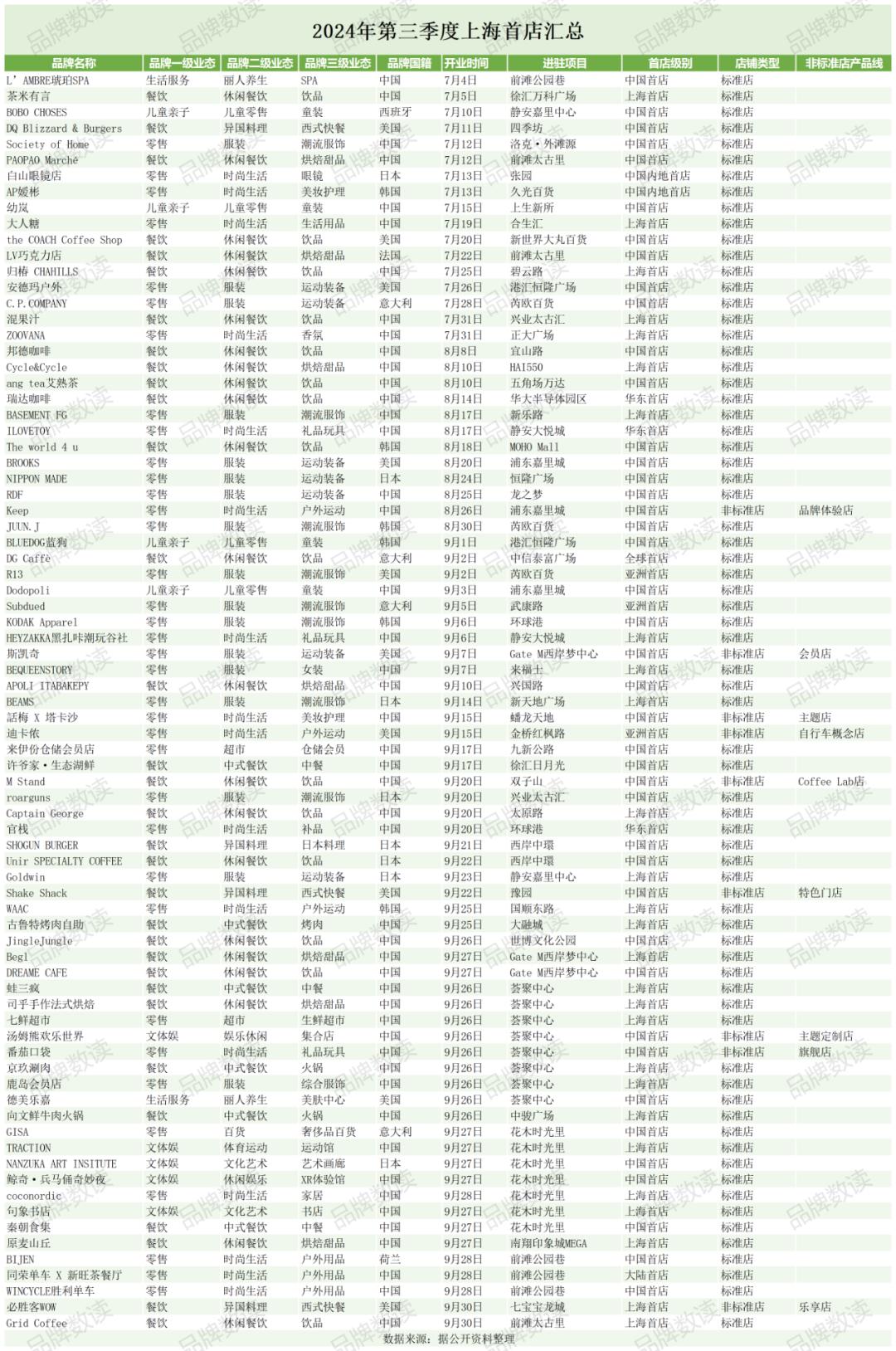 以下是第三季度的上海首店汇总: