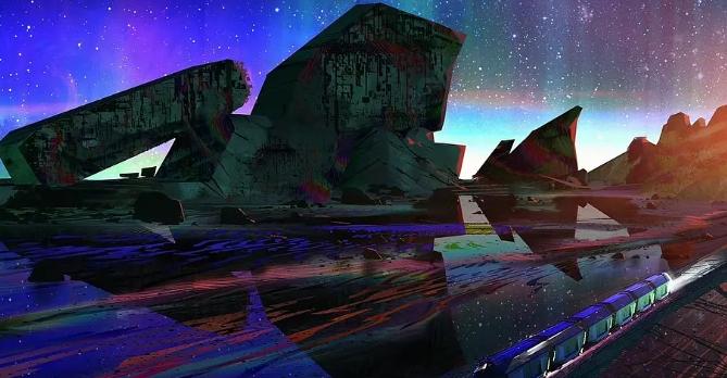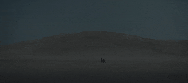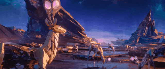 地表的机械小鹿身上也反射出一种迷幻的光泽。不过星球表面也充满了危险,地表的山丘随着能量的脉动向前吞噬着,这一幕致敬了《沙丘》的异世界经典奇观。