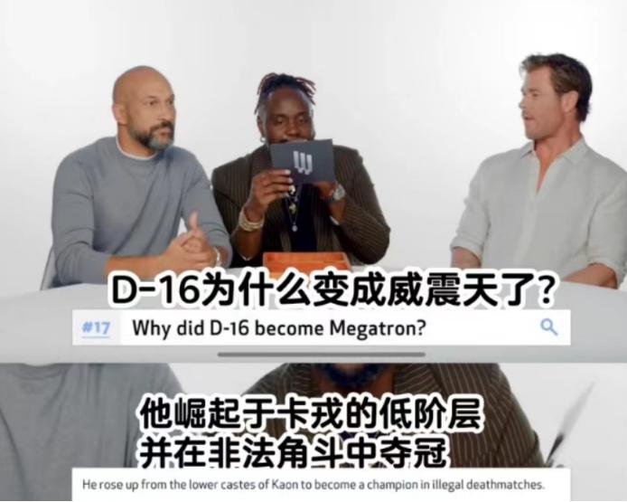 擎天柱的配音,“锤哥”克里斯·海姆斯沃斯;艾丽塔的配音,“寡姐”斯嘉丽·约翰逊。