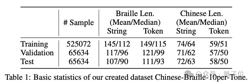 为此,论文作者们首先构建了一组中文-盲文数据集,包括Chinese-Braille-Full-Tone、Chinese-Braille-No-Tone和Chinese-Braille-10per-Tone。