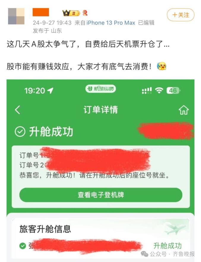 有网友晒出升舱截图称: