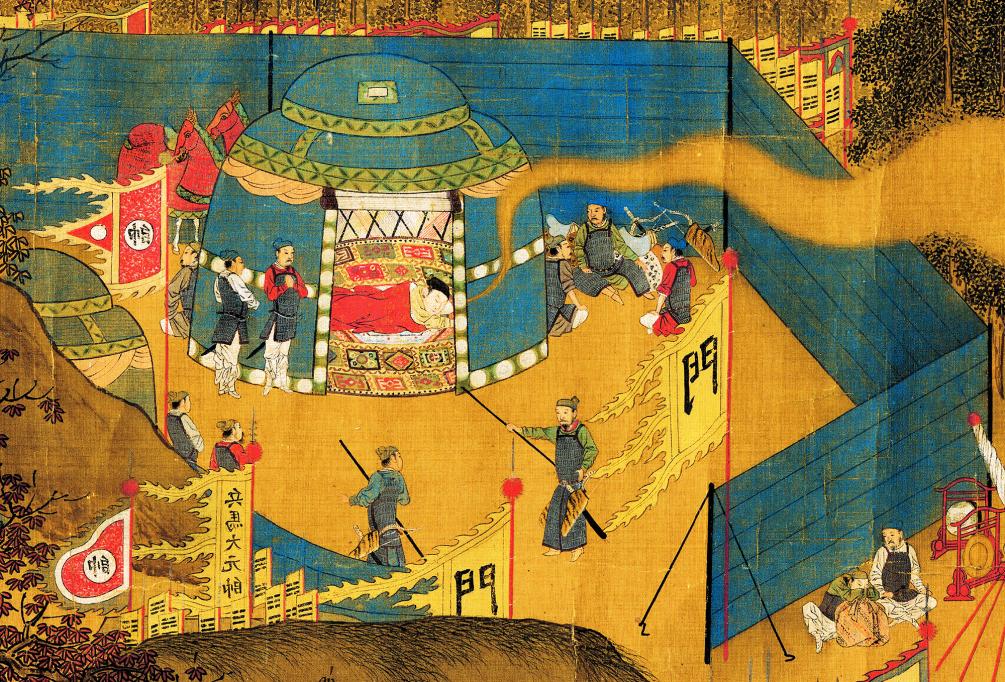 南宋萧照《中兴瑞应图》(局部),赵构南渡扎营时,其大帐周围有军兵彻夜守护杨存中明白,在官家眼里,他是以忠孝著称的。他本名杨沂中(字正甫),存中这个名字就是赵构恩赐的。宋金议和天下太平时,他向赵构打报告,说自己祖父和父亲,当年都是在抗金一线阵亡的,恳请能为他们树碑立传。赵构大笔一挥,他祖父杨宗闵谥号忠介,父亲杨震谥号忠毅,还分别赐建祠庙叫显忠、报忠,非常隆重。