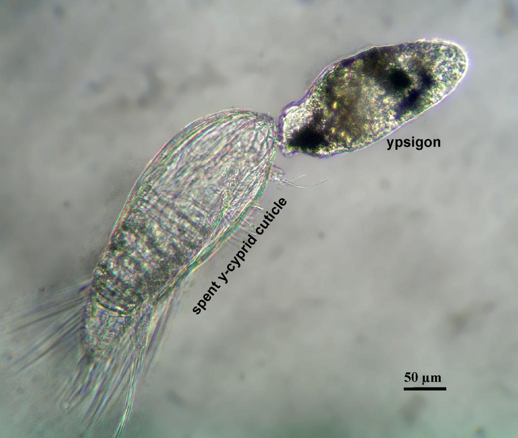 每个Y-nauplius都要经历五种不同的形态,然后就会蜕变进入第二阶段,被称为Cyprid,而这个阶段的个体被称为Y-Cyprid(Y介虫体)。