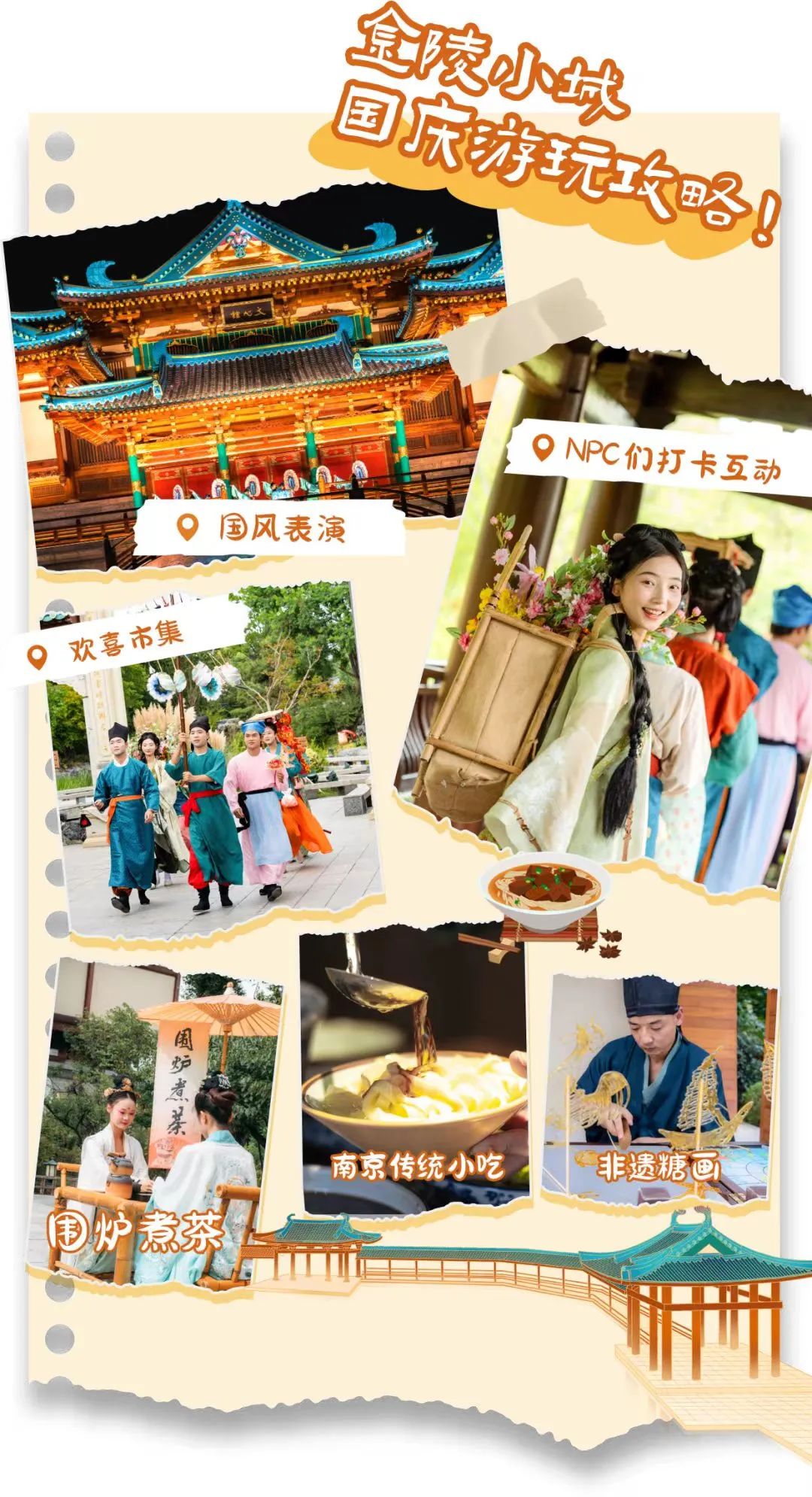 位于牛首山文化旅游区西部的金陵小城以追忆金陵盛景闻名,游客能体验游宴雅集、名士风雅的千年金陵风华。国庆期间