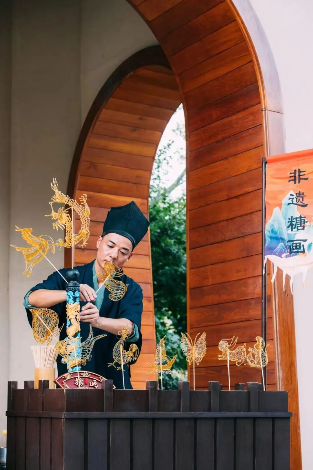 小贩推着小推车走街串巷、非遗糖画和糖葫芦铺子传来吆喝叫卖声、背着花篓的卖花姑娘还会免费赠你一枚花钿;