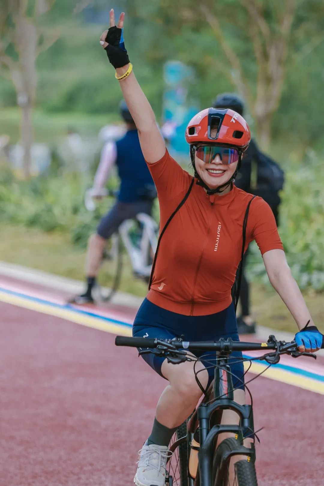 “今天骑得比较慢,边走边欣赏一路风景。”骑行博主京京经常在社交媒体上分享自己的骑行经验,也经常从郫都骑行50公里到天府新区兴隆湖骑车。第一次骑“鹿溪公园环”,她表示,“这边的绿道宽敞,不存在红绿灯、车辆等,骑车很安全,很顺畅。”每天从龙泉山骑行30公里左右到兴隆湖,与朋友环湖骑行已经是骑手“捷克~”的日常,初次尝试新的路线,他表示,“今天参加活动的人很多,一路上以起伏路为主,骑起来很舒服。”