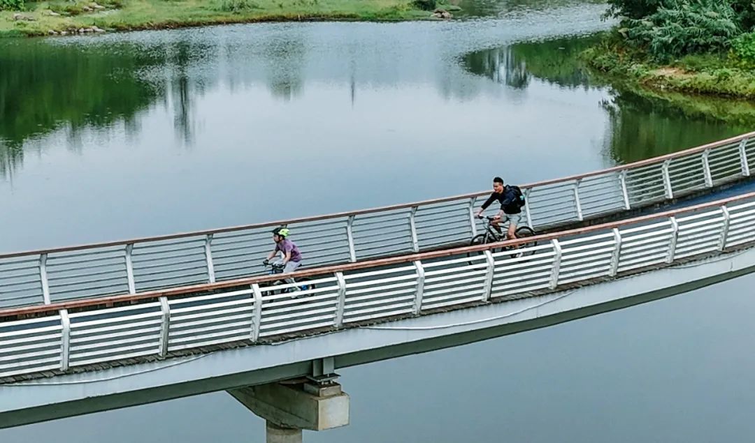 时而经过溪水,时而穿过城市,随着骑行的速度加快,一片片绿色飞速后退,风在耳边呼啸,带来自然清新的空气。